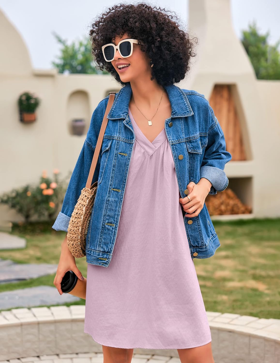 Ekouaer Nightgown for Women Sleeveless Sleepwear Lightweight Racerback Sleep Shirt Pleated V Neck Night Dress Short ChemiseLight Pink