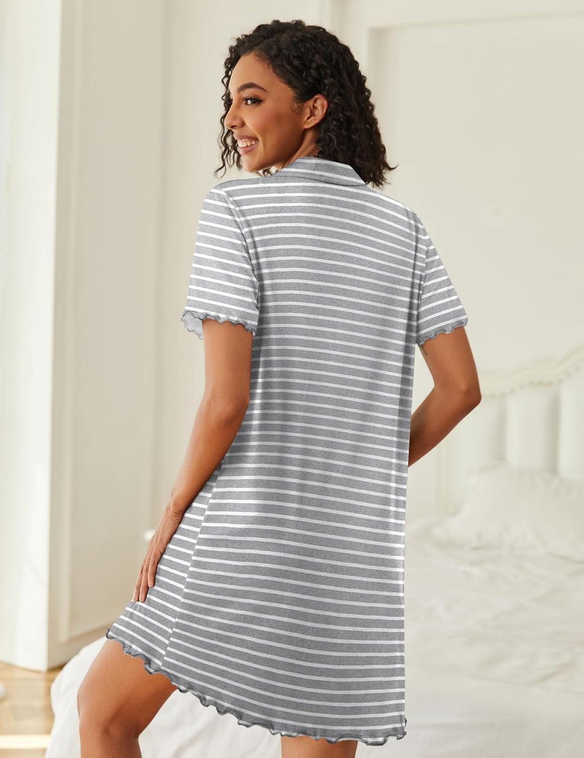 Be the first to review “Ekouaer Nightgowns for Women Button Down Night Gowns Short Sleeve Sleep Shirts V Neck Night Shirts Soft Sleepwear(Grey Stripe)” Cancel reply