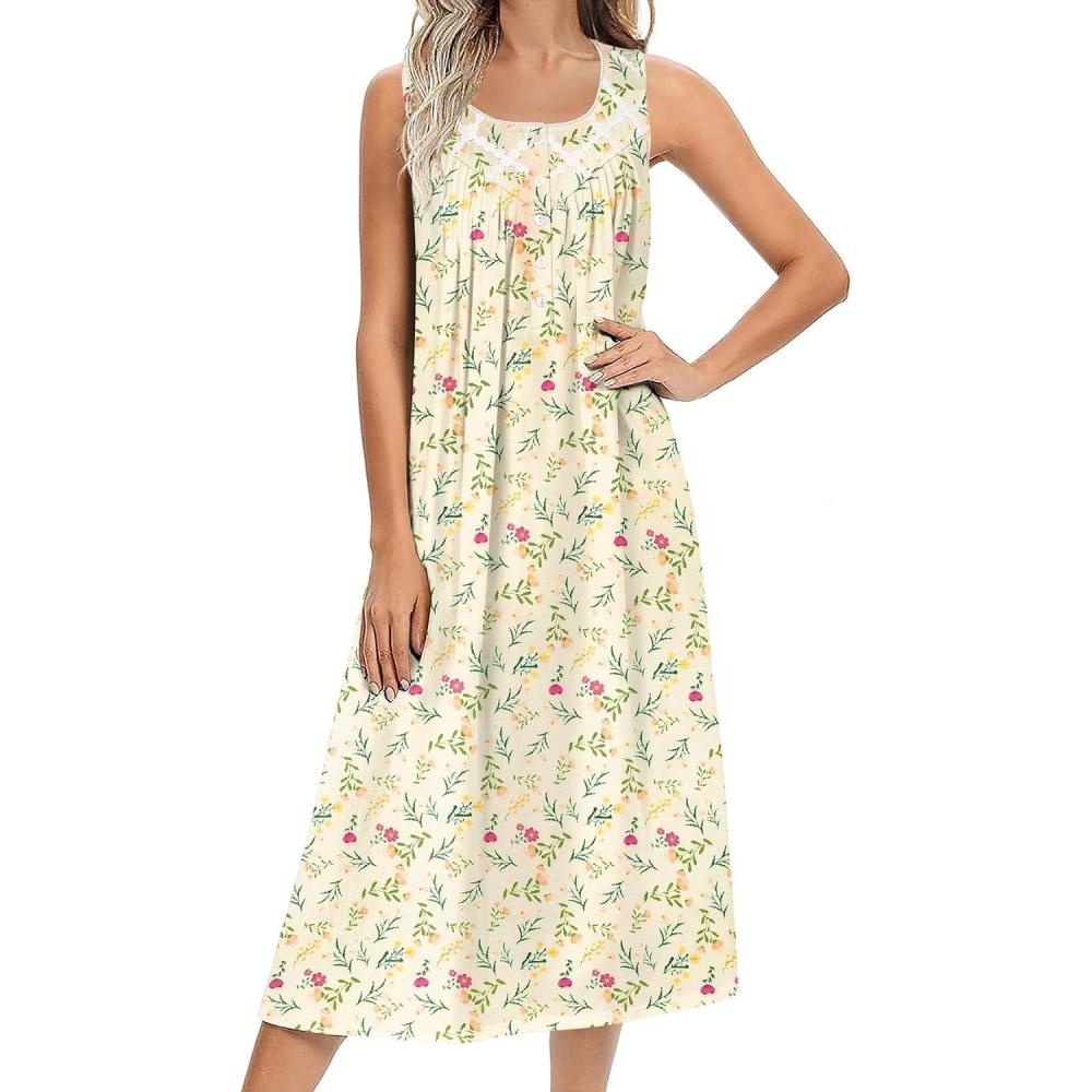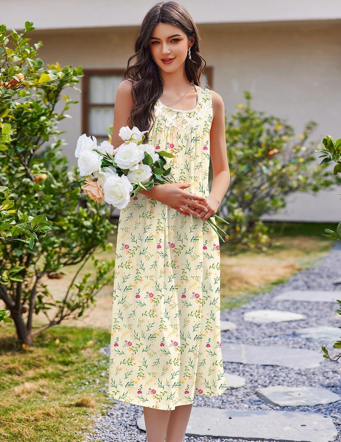 Get up to 70% off on Ekouaer Nightgowns for Women Cotton Long Night Gown Sleeveless Sleep Dress Victorian Nightdress Ladies Sleepwear S-XXXL(Yellow Green Leaf) styles during our end-of-season clearance event.