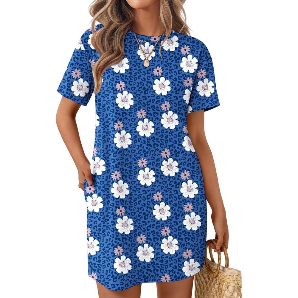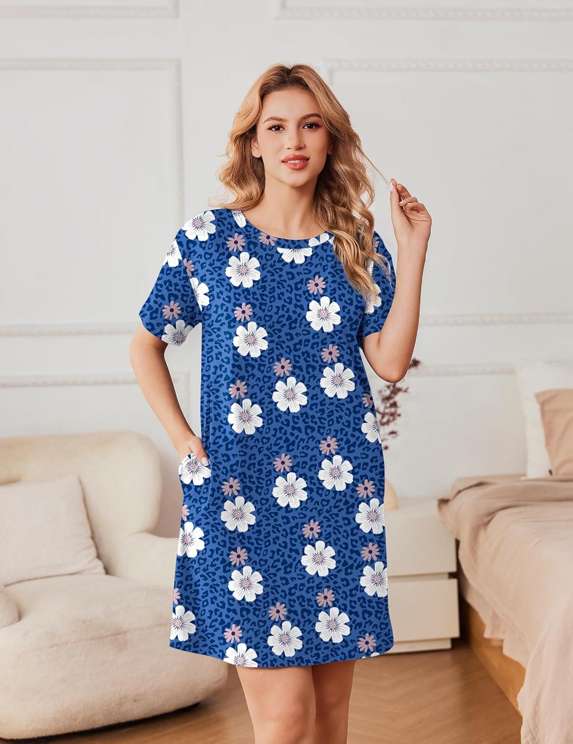 Ekouaer Nightgowns for Women Cotton Sleep Shirts Tshirt Nightshirt Casual Sleepdress Pullover Dress with Pockets S-3XL(Leopard Flower)