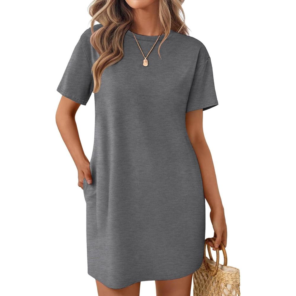 Ekouaer Nightgowns for Women Cotton Sleep Shirts Tshirt Nightshirt Casual Sleepdress Pullover Dress with Pockets S-3XL(Medium Gray)
