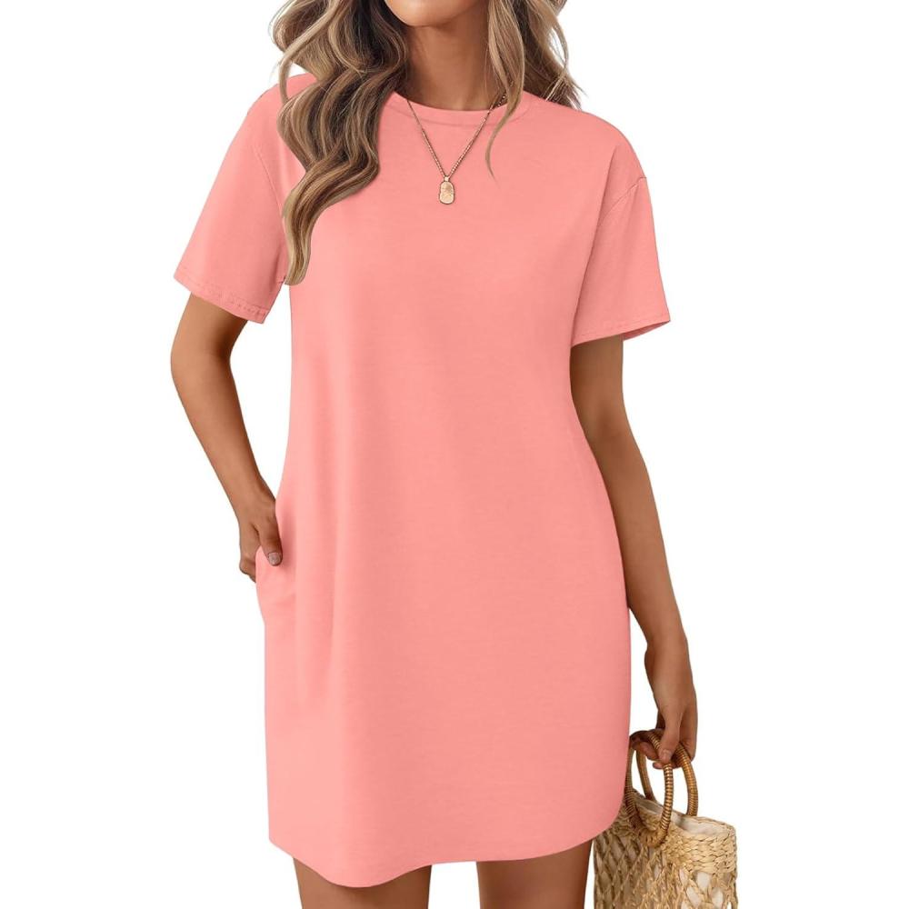 imageEkouaer Nightgowns for Women Cotton Sleep Shirts Tshirt Nightshirt Casual Sleepdress Pullover Dress with Pockets S3XLOrange Pink