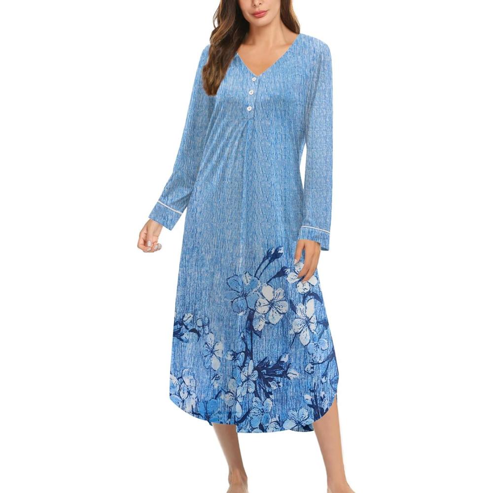 Get up to 60% off on Ekouaer Nightgowns for Women Long Sleeve Nightgown Long Sleepwear Button Down Sleep Shirt Soft Night Gown S-4XL(Blue Floral) styles during our winter sale event.