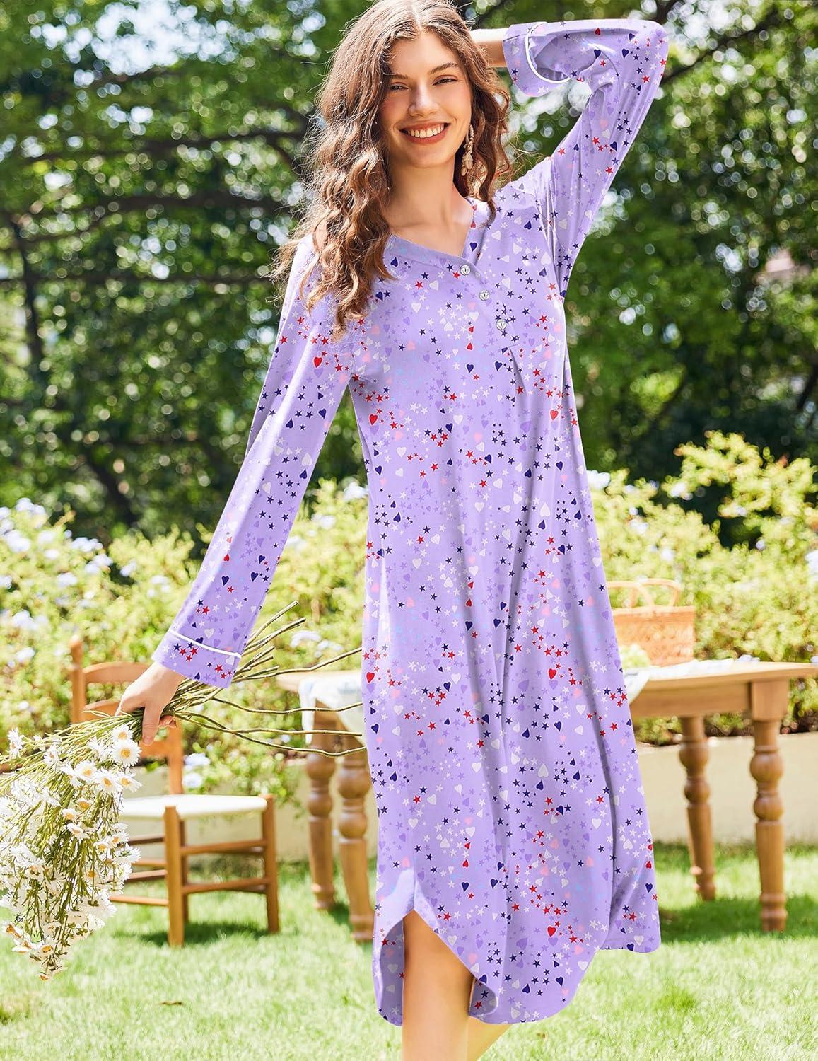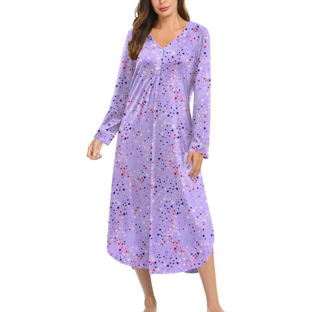 Get up to 50% off on Ekouaer Nightgowns for Women Long Sleeve Nightgown Long Sleepwear Button Down Sleep Shirt Soft Night Gown S-4XL(Purple Stars) styles during our spring sale event.