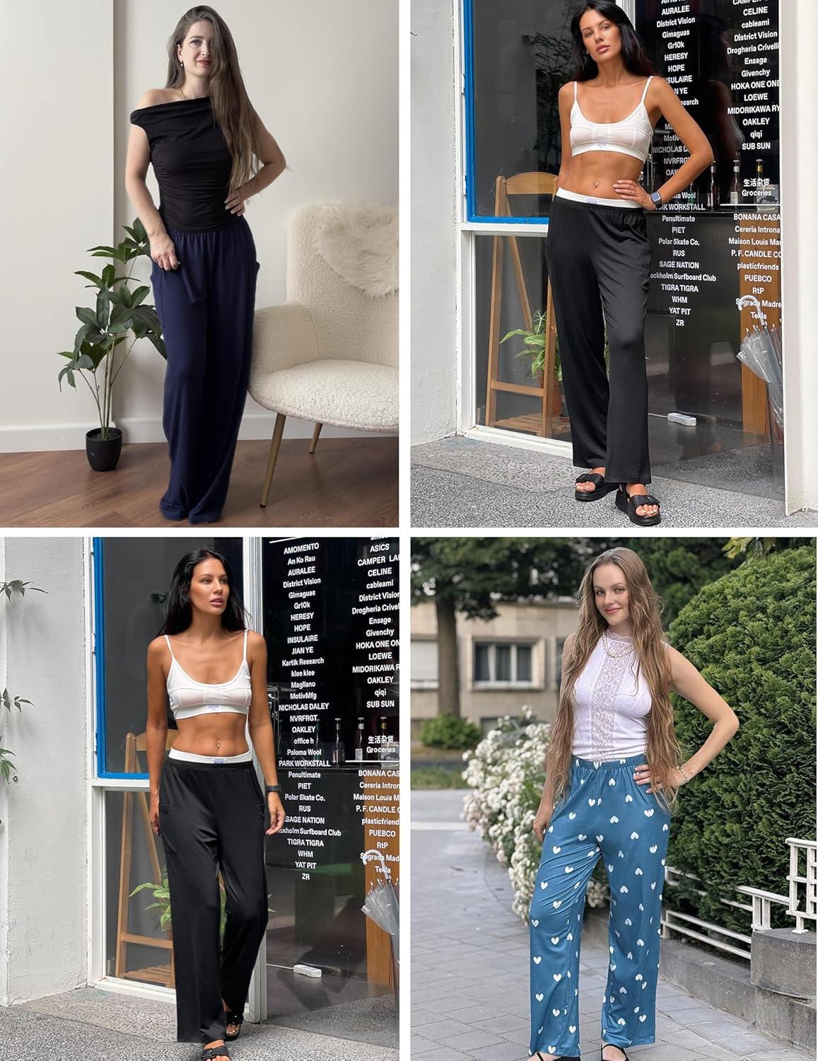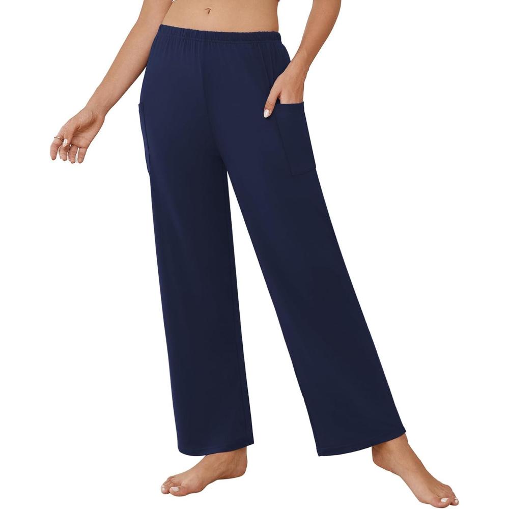 imageEkouaer Pajama Pants for Women Soft Comfy Pajama Sleep Bottoms Casual Stretch Wide Leg Lounge Pants with PocketsNavy