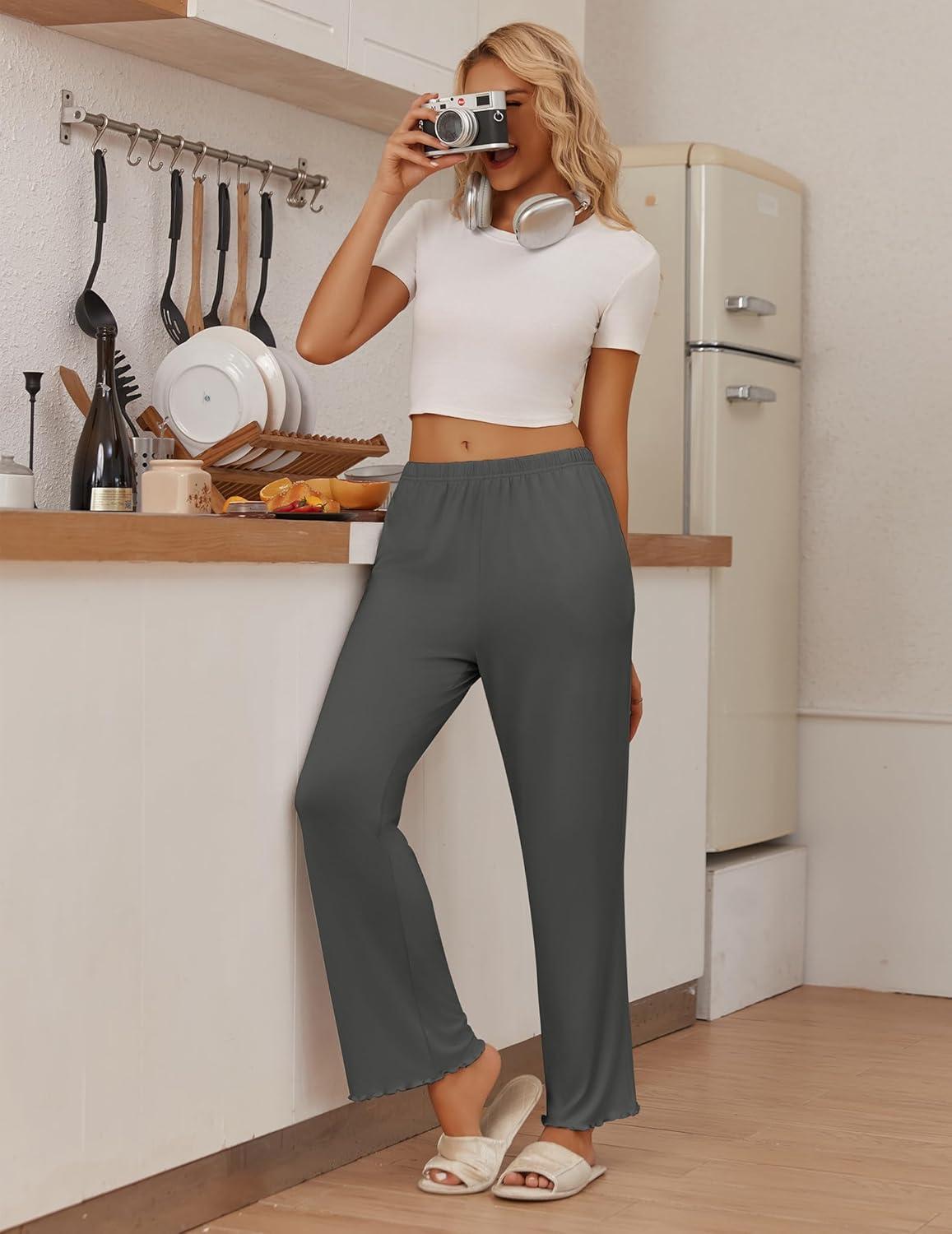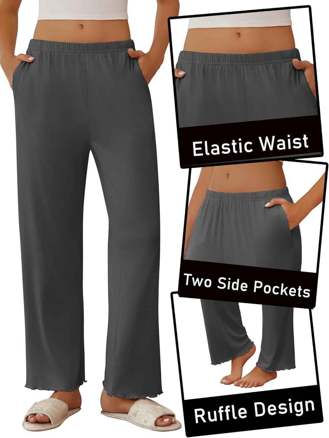 Ekouaer Pajama Pants Women Soft Casual Lounge Pajama Bottoms Comfy Stretch Sleep Pants Wide Leg Pj Bottoms with Pockets(Dark Grey)