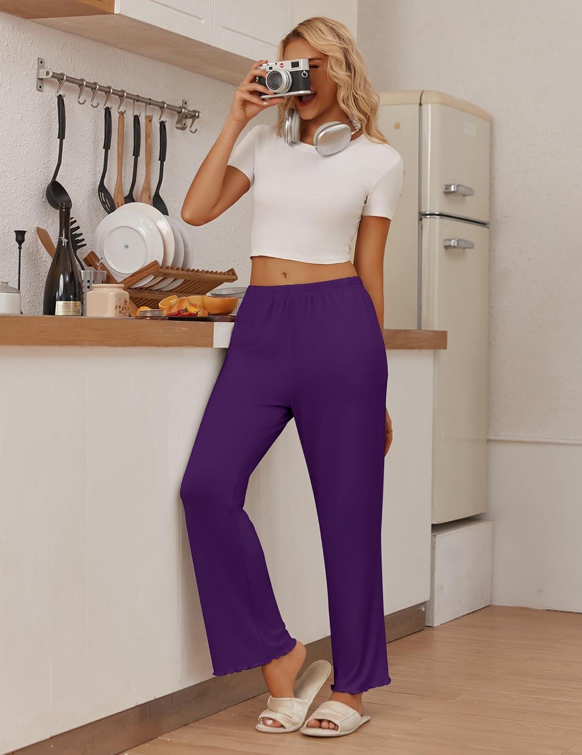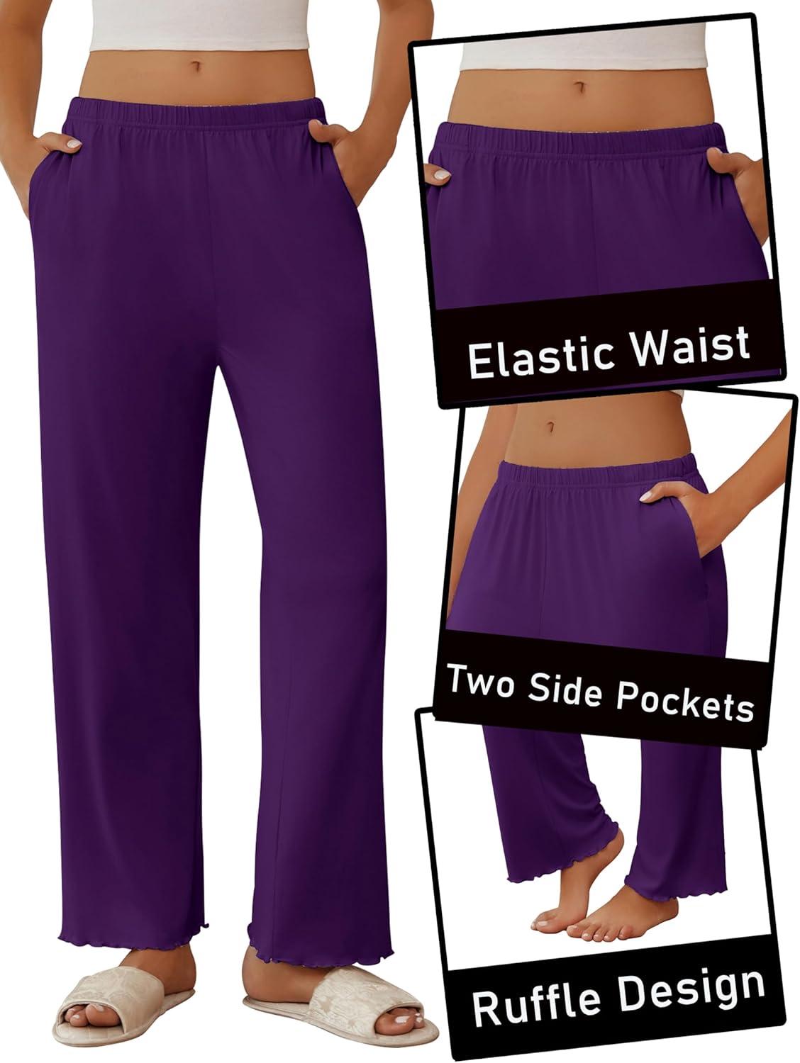 Ekouaer Pajama Pants Women Soft Casual Lounge Pajama Bottoms Comfy Stretch Sleep Pants Wide Leg Pj Bottoms with Pockets(Dark Purple)