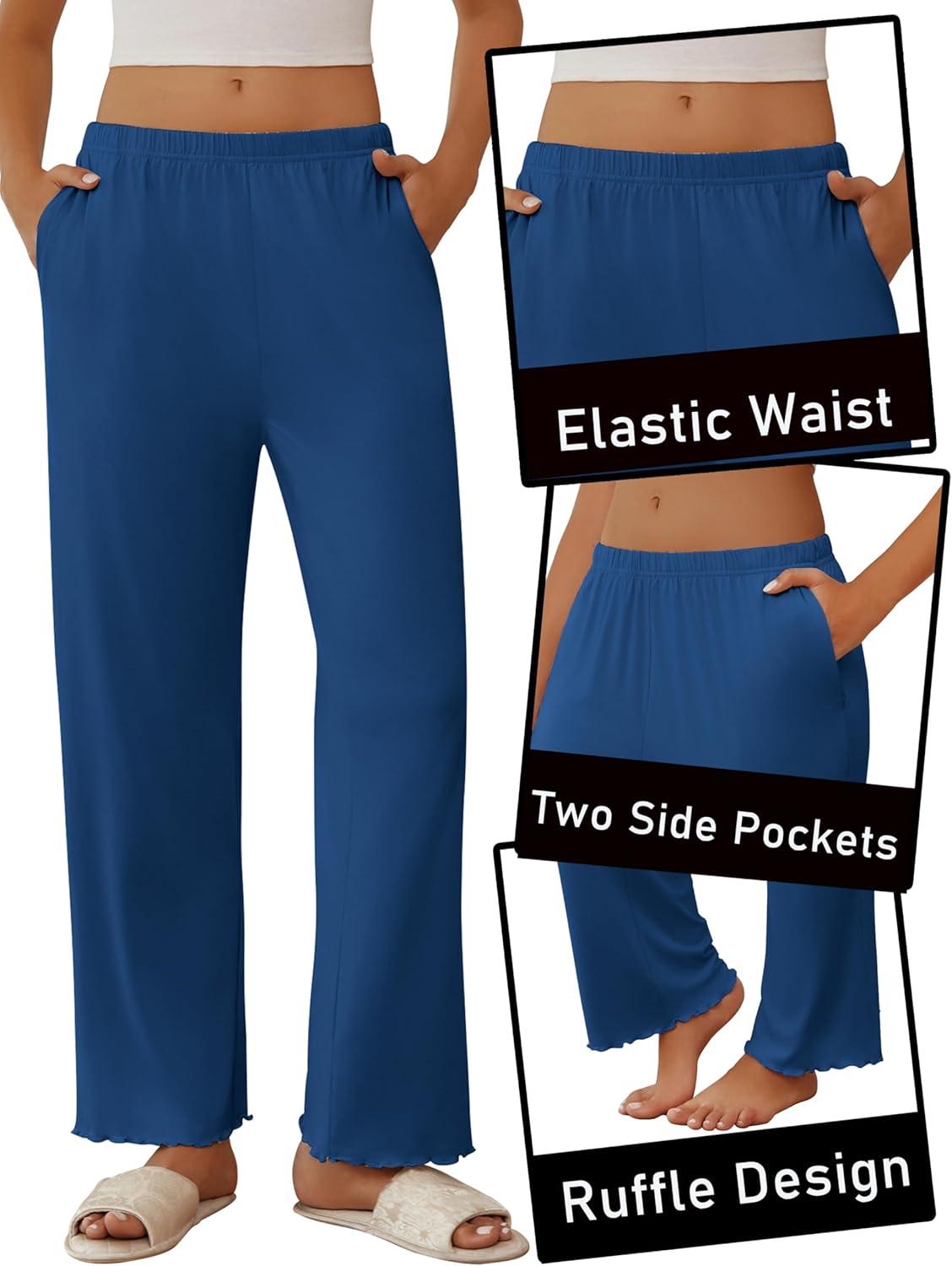 Ekouaer Pajama Pants Women Soft Casual Lounge Pajama Bottoms Comfy Stretch Sleep Pants Wide Leg Pj Bottoms with Pockets(Navy)