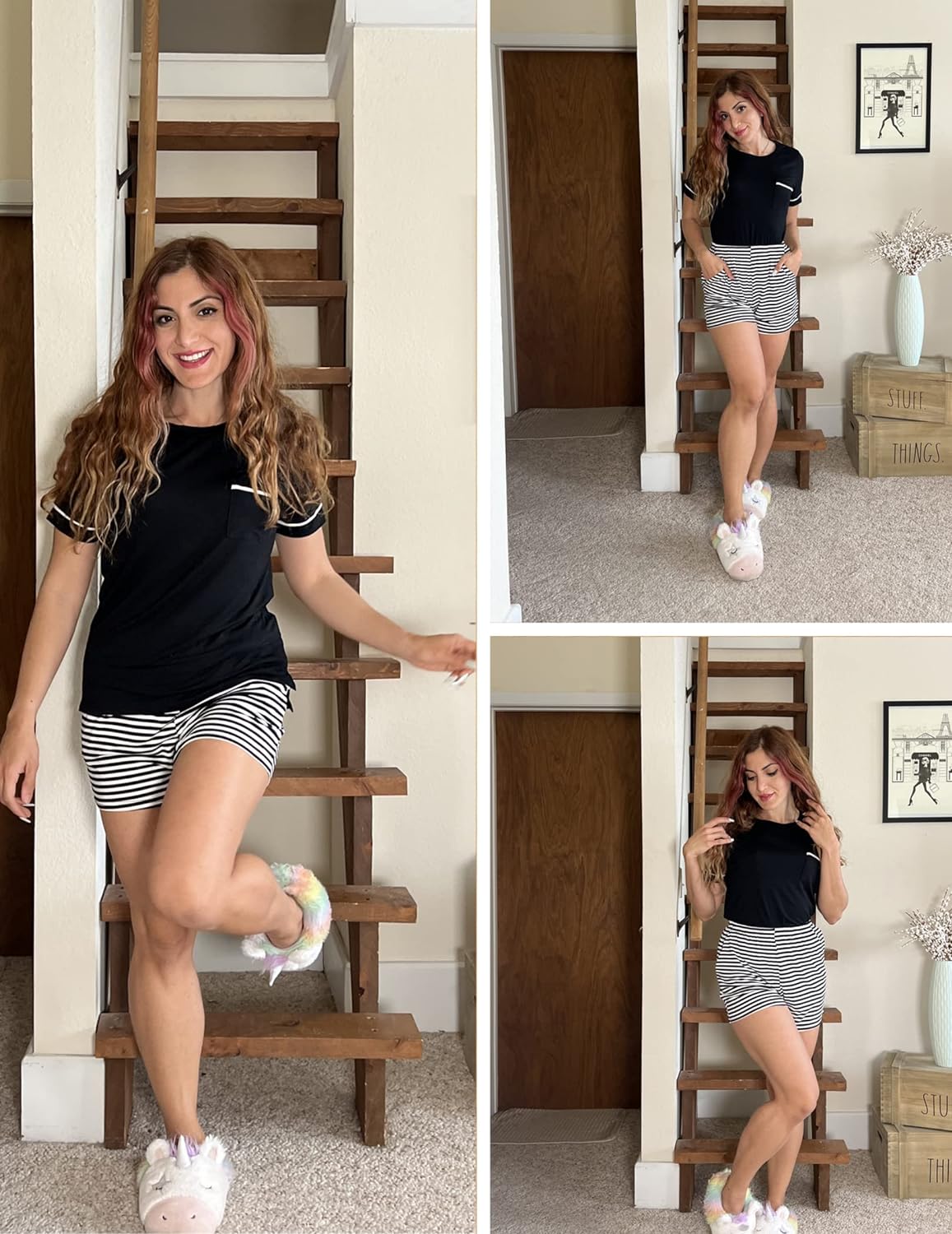 Ekouaer Pajama Set for Women 2 Piece Short Sleeve Tops Sleepwear Loungewear Two Piece Pjs Shorts with PocketsA01 Black