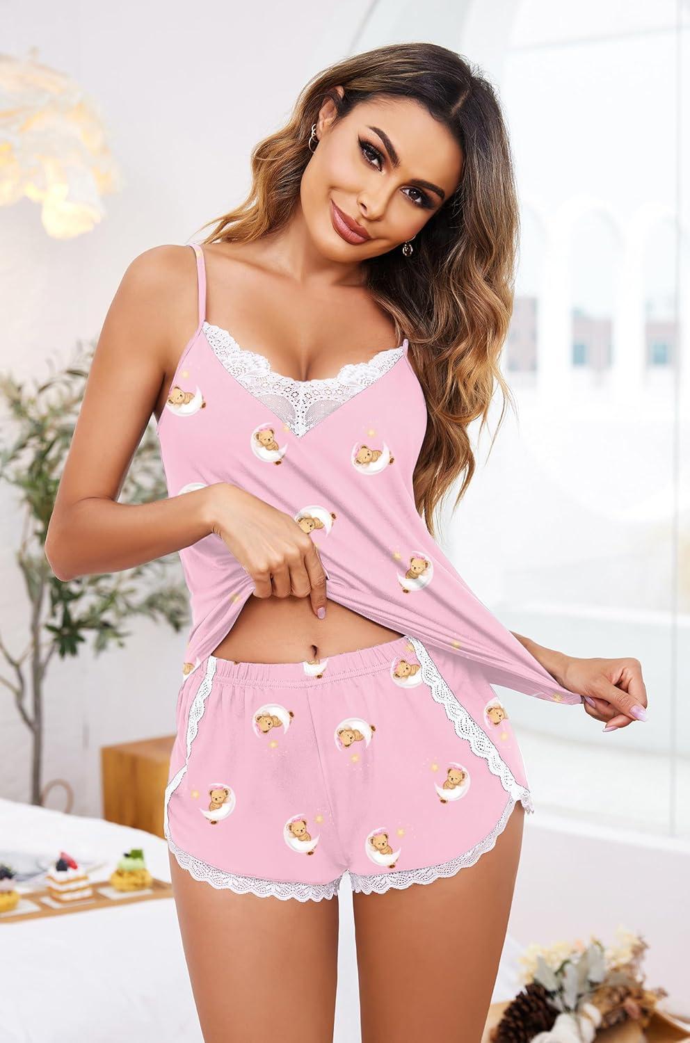 This cami pajama set is made of 95% polyester and 5% spandex.The sleeveless pajamas set is soft, stretchy and lightweight for sleepwear and loungewear.