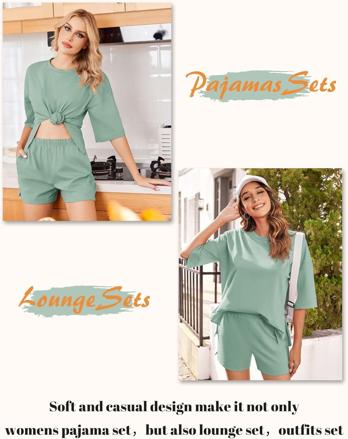 Ekouaer Pajamas for Women Set 2 Piece PJ Soft Comfy Lounge Sets Short Sleeve Tops Shorts Sets Cotton Sleepwear S-XXL(Light Green)