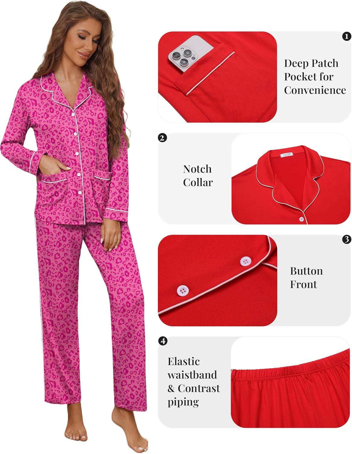 Get up to 70% off on Ekouaer Pajamas for Women Set Button Down Pj Long Sleeve Shirt and Pants Lounge Sets Fall Sleepwear with Pockets(Hot Pink Leopard) styles during our end-of-season clearance event.