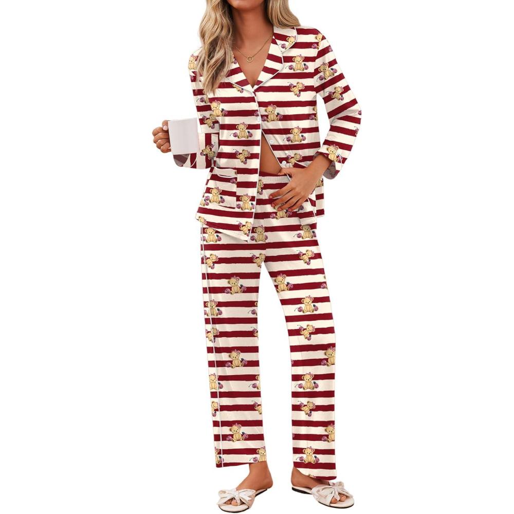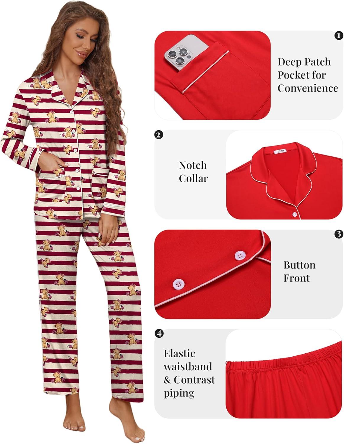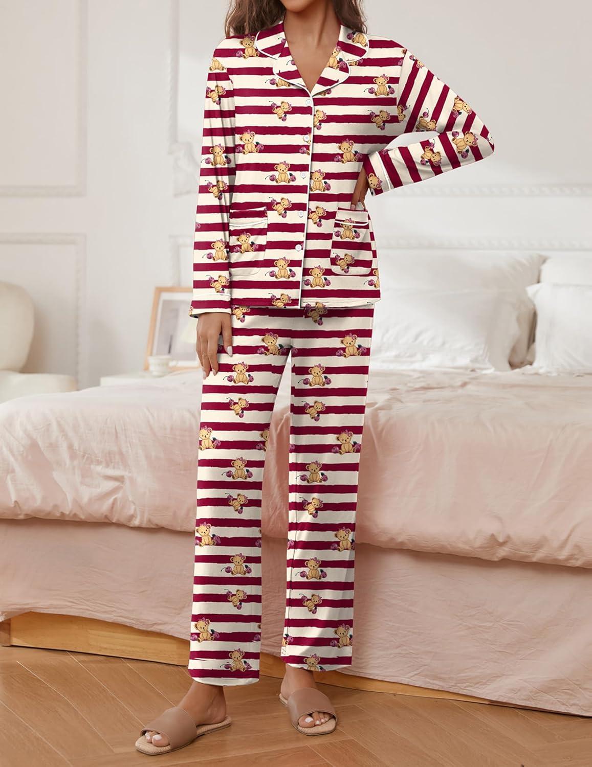 Ekouaer Pajamas for Women Set Button Down Pj Long Sleeve Shirt and Pants Lounge Sets Fall Sleepwear with Pockets(Striped Teddy)