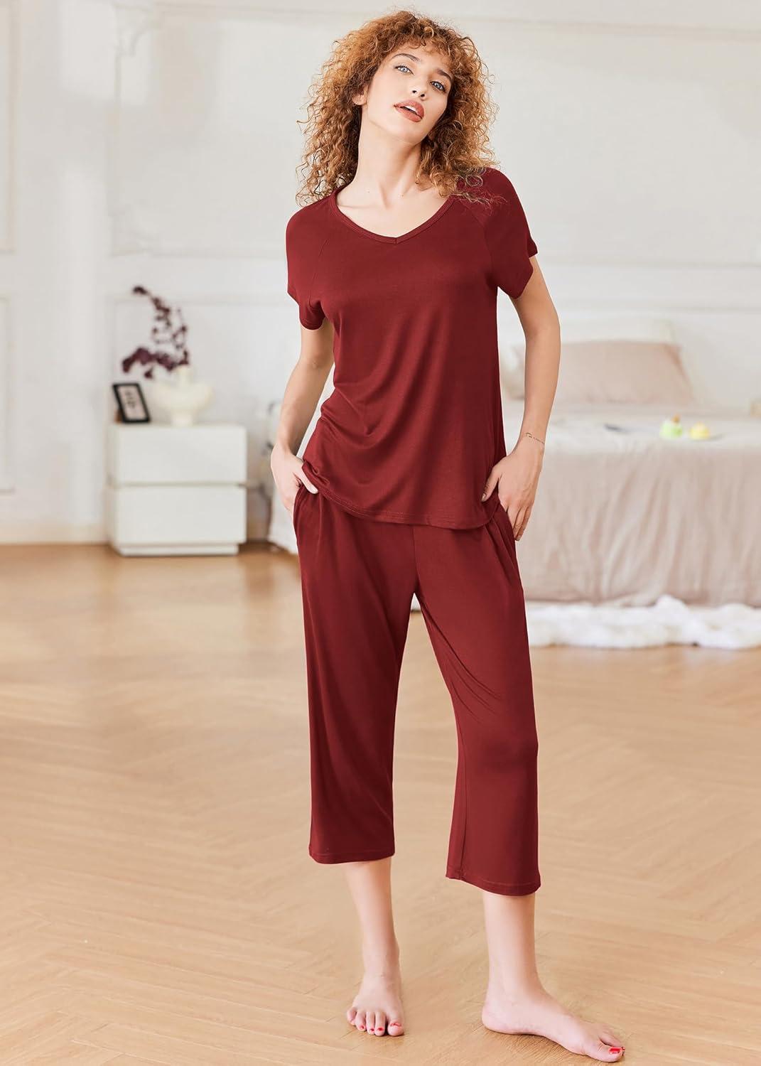 Score big savings on Ekouaer Pajamas for Women Set Short Sleeve Pj Sets Pullover Tops & Capri Pants 2 Piece Sleepwear Loungewear S-XXL(Wine Red) during our back-to-school sale. Limited quantities available.