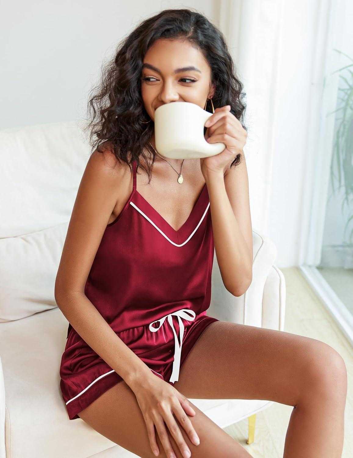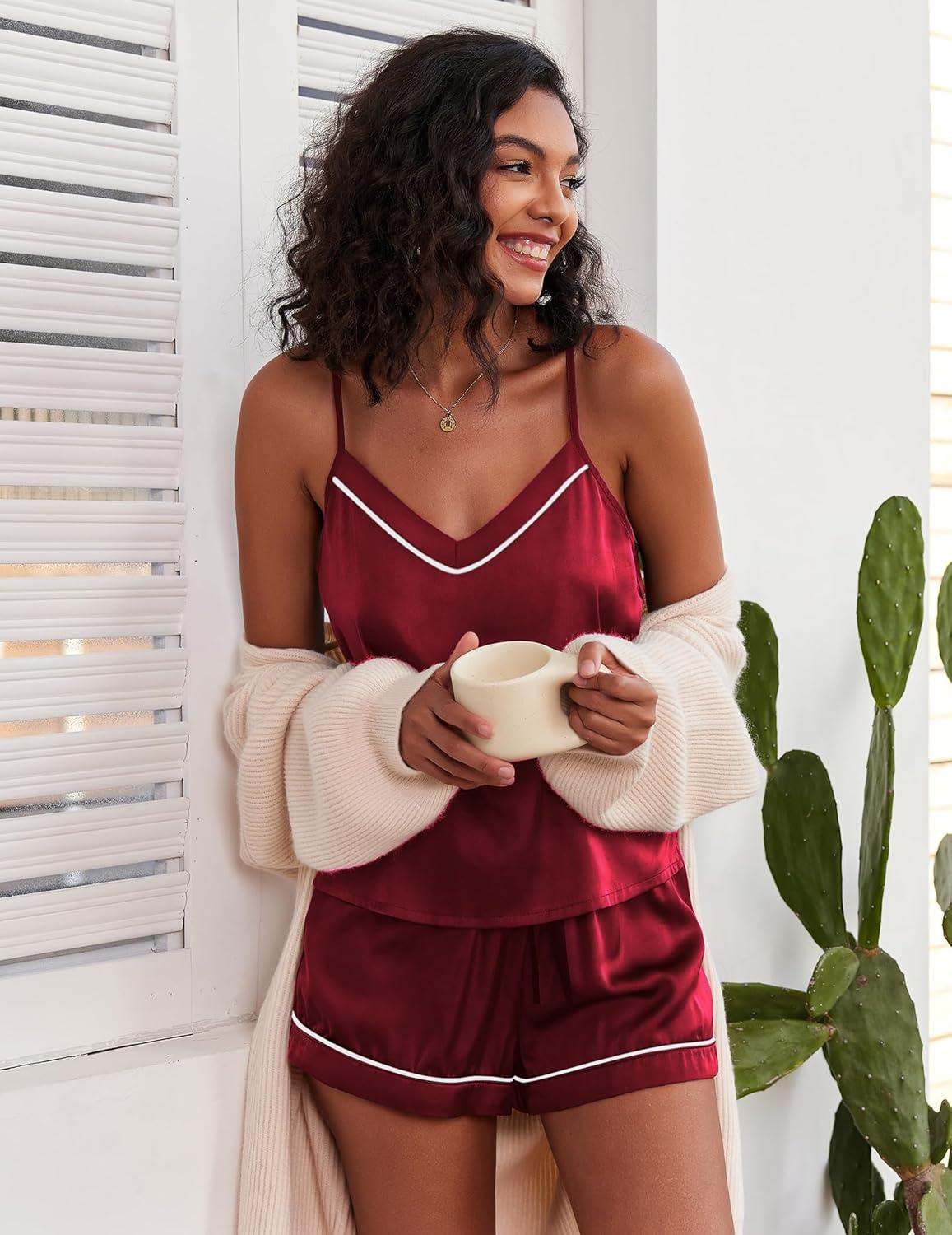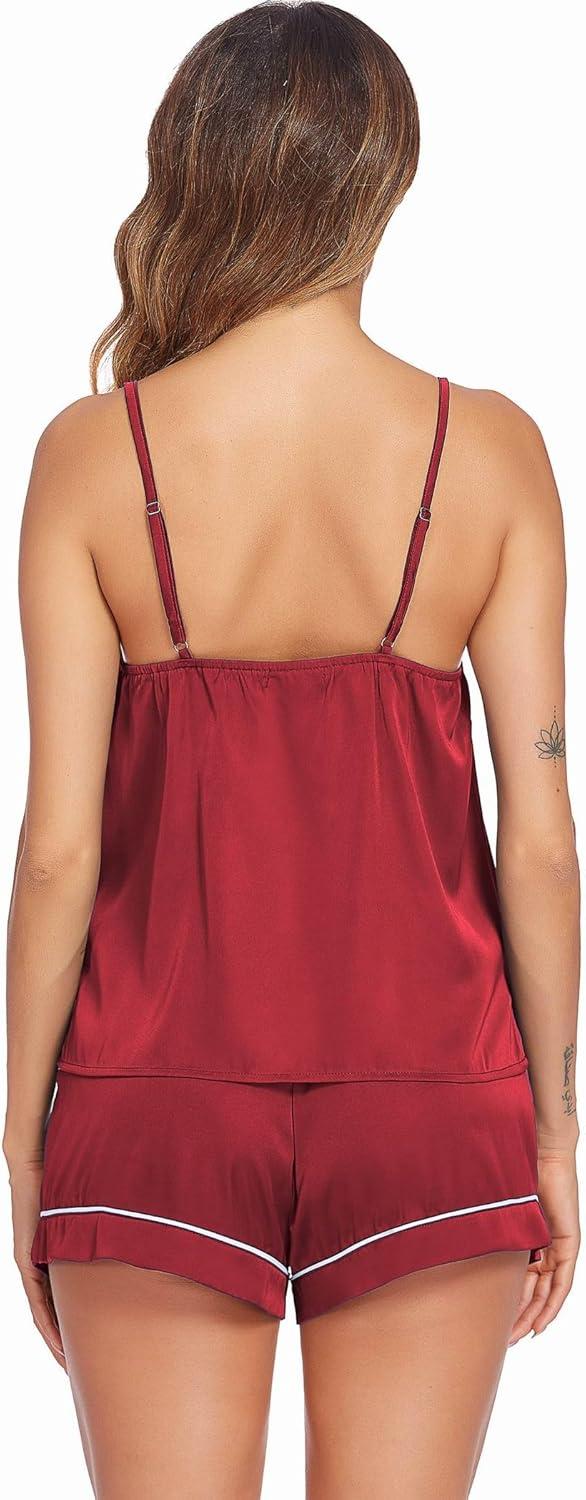 Ekouaer Pajamas for Women Set Silk Satin Pjs Sexy Lingerie Sleepwear Cami Shorts Set Summer Nightwear S-XXL(Red)