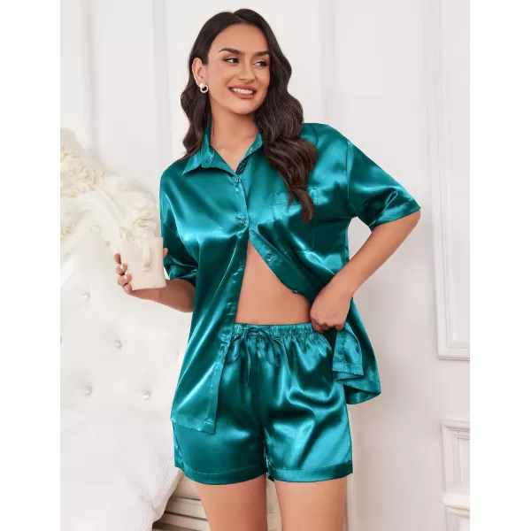 Ekouaer Pajamas for Women Silk Soft Sleepwear Short Sleeve Button Down Pjs Satin Top and Shorts 2 Piece Lounge Set SXXLPeacock Blue