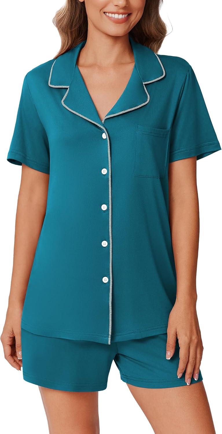 Save big on Ekouaer Pajamas Set for Women 2 Piece Pjs Short Sleeve Sleepwear Button Down Lounge Shorts Sets S-XXL(Blue Green) during our summer blowout sale. Limited quantities available.