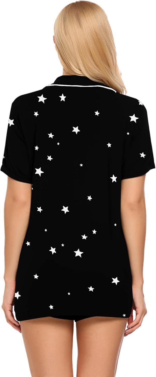 Ekouaer Pajamas Set for Women Short Sleeve Sleepwear Button Down Pjs Soft 2 Piece Lounge Sets(Black With Stars)
