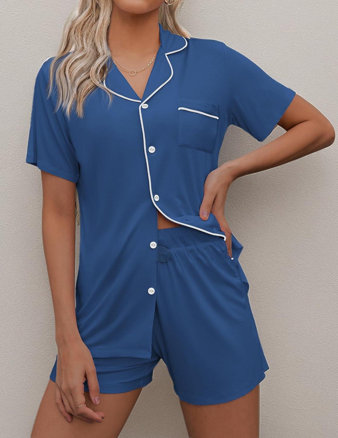 Ekouaer Pajamas Set for Women Short Sleeve Sleepwear Button Down Pjs Soft 2 Piece Lounge Sets(Clear Blue)