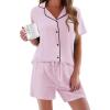 imageEkouaer Pajamas Set for Women Short Sleeve Sleepwear Button Down Pjs Soft 2 Piece Lounge SetsLight Sky Blue