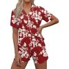 imageEkouaer Pajamas Set for Women Short Sleeve Sleepwear Button Down Pjs Soft 2 Piece Lounge SetsDeep Flower Gray