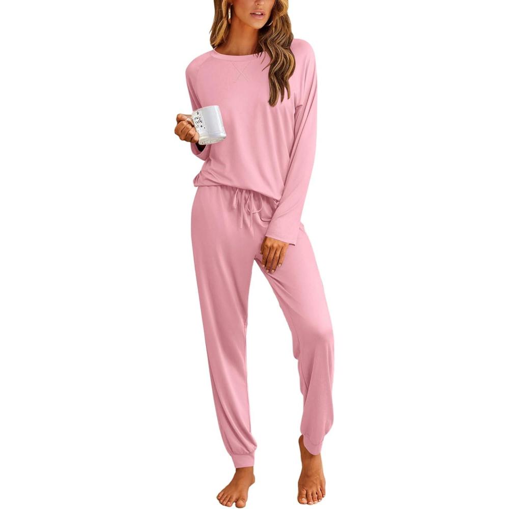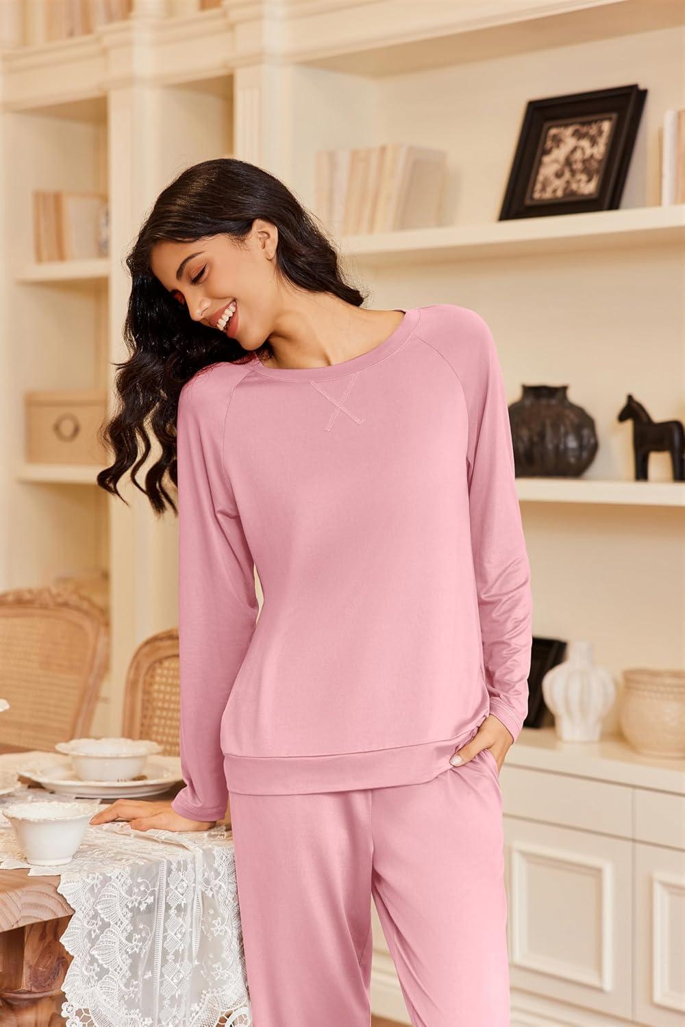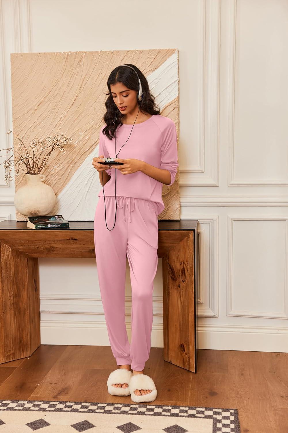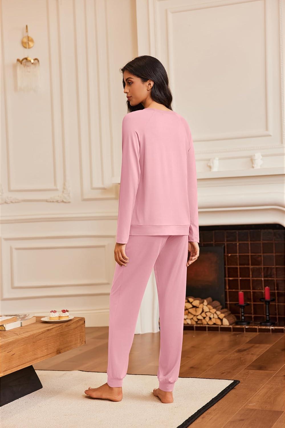 Ekouaer Pajamas Womens Long Sleeve Pj Set 2 Piece Loungewear Soft Comfy Sleepwear with Jogger Pants S-XXL(Pink)