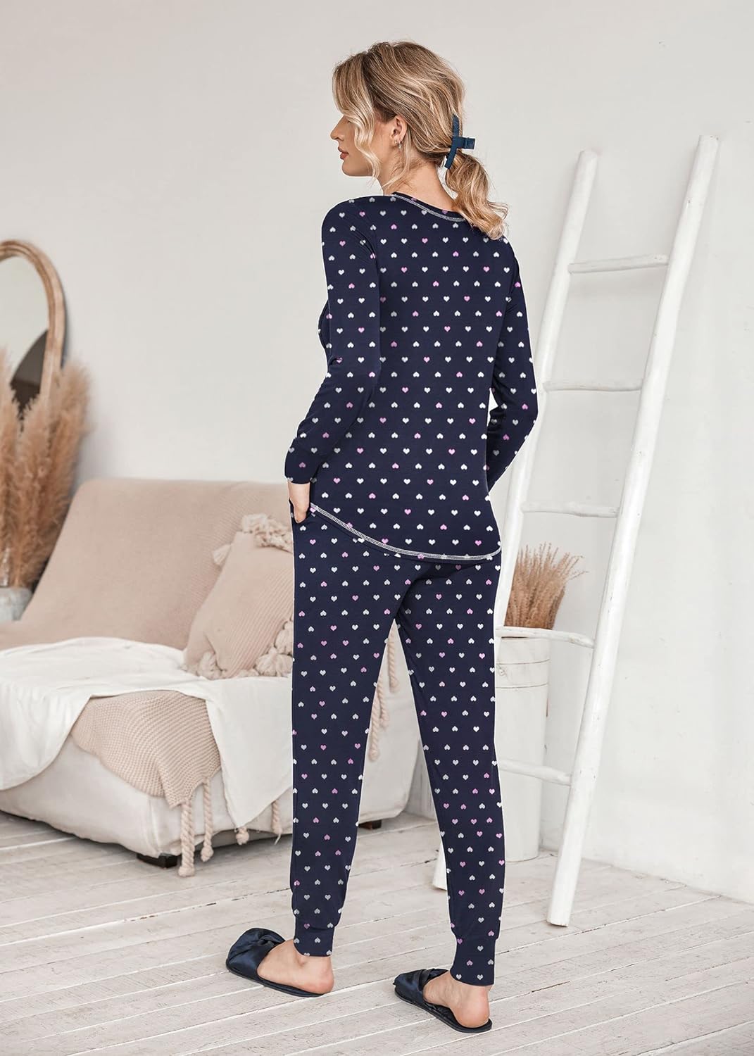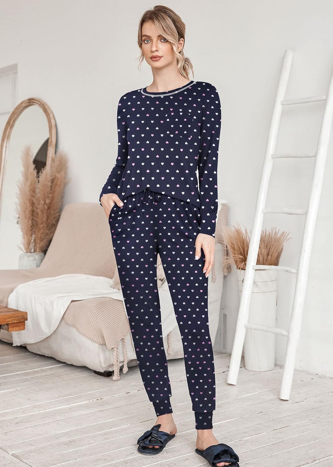 Ekouaer Pajamas Womens Long Sleeve Sleepwear with Long Pants Soft Loungewear Pj Set XS3XLHeart Print