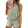 imageEkouaer Ribbed 2 Piece Lounge Sets Sleeveless Pajama Tank and Shorts Set Summer Pjs Loungewear Matching Outfits for WomenArmy Green