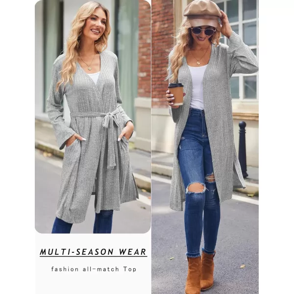 Ekouaer Robe for Women Ribbed Knit Kimono Robes Soft Side Slit Bathrobe Ladies Sleepwear with PocketsLight Grey