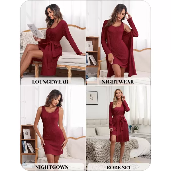 Ekouaer Robe Sets for Women Sleepwear Rib Knit Bodycon Nightgown with Robes Set 2 Piece Soft Lightweight Loungewear SXXLBurgundy