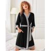 Ekouaer Robes for Women Knee Length Bathrobe Lightweight Kimono Robe 3/4 Sleeve Knit Sleepwear with Pockets(Black)
