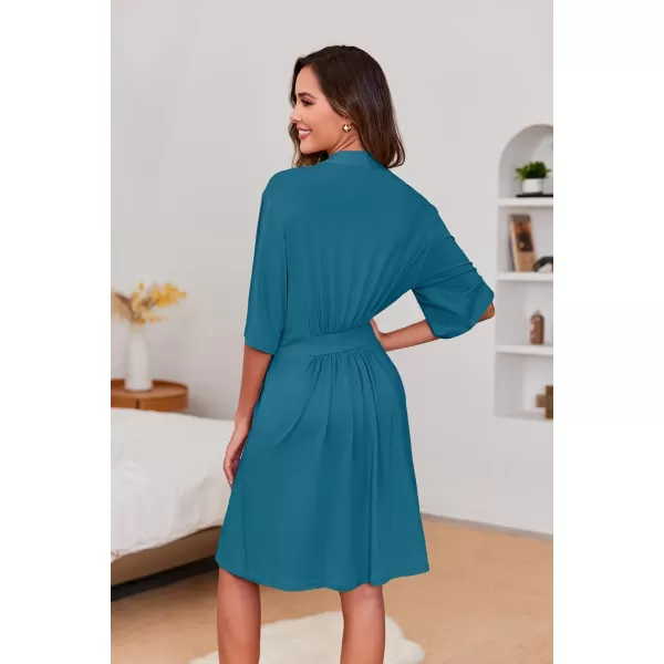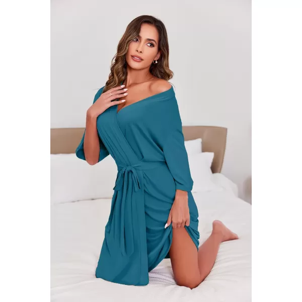 Ekouaer Robes for Women Short Knit Bathrobe Lightweight Soft Knit Sleepwear Casual Ladies LoungewearBlue Green