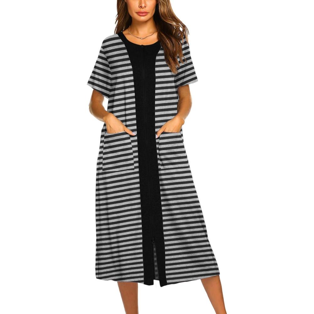 imageEkouaer Robes For Women Zipper Front Bathrobe Short Sleeve House Coat Long Nightgown With Pockets Soft LoungewearPat12