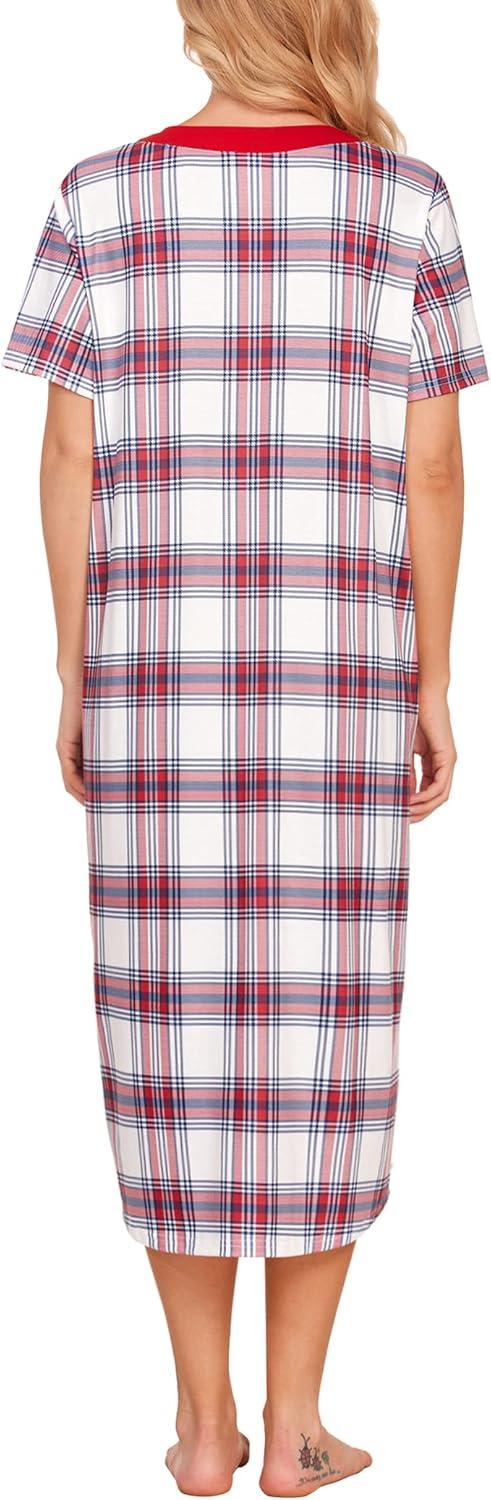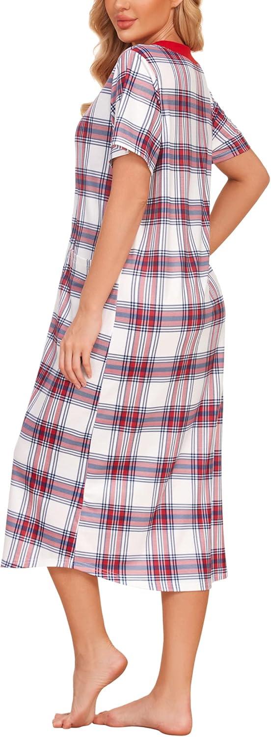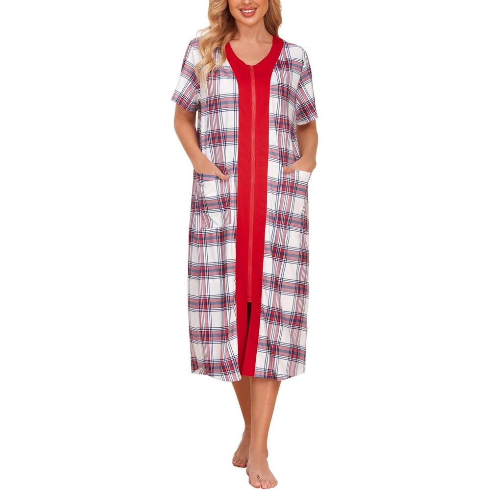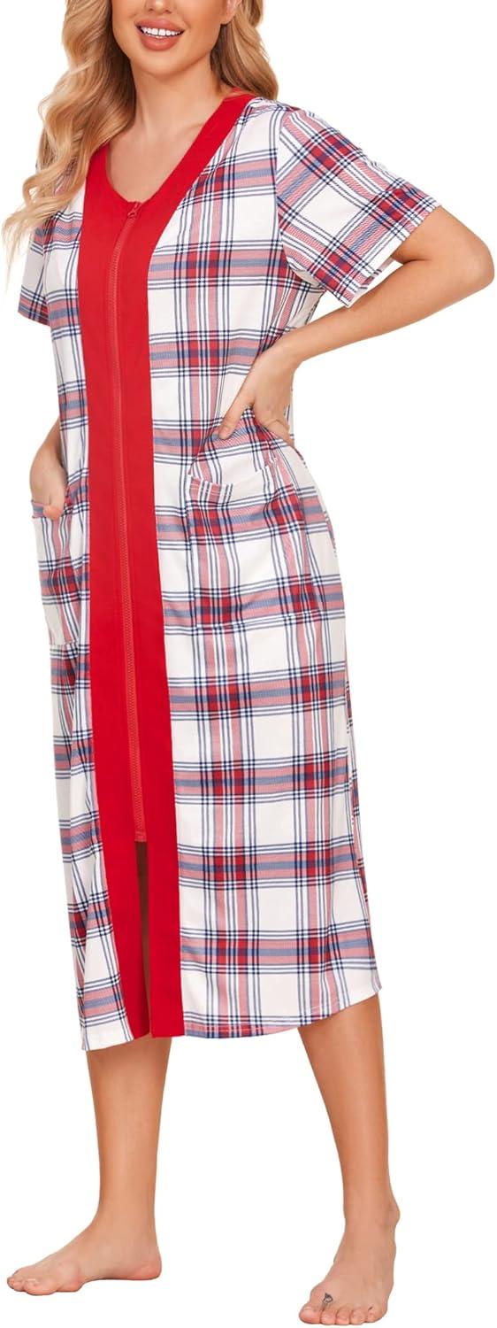 Ekouaer Robes For Women Zipper Front Bathrobe Short Sleeve House Coat Long Nightgown With Pockets Soft Loungewear(Pat6)
