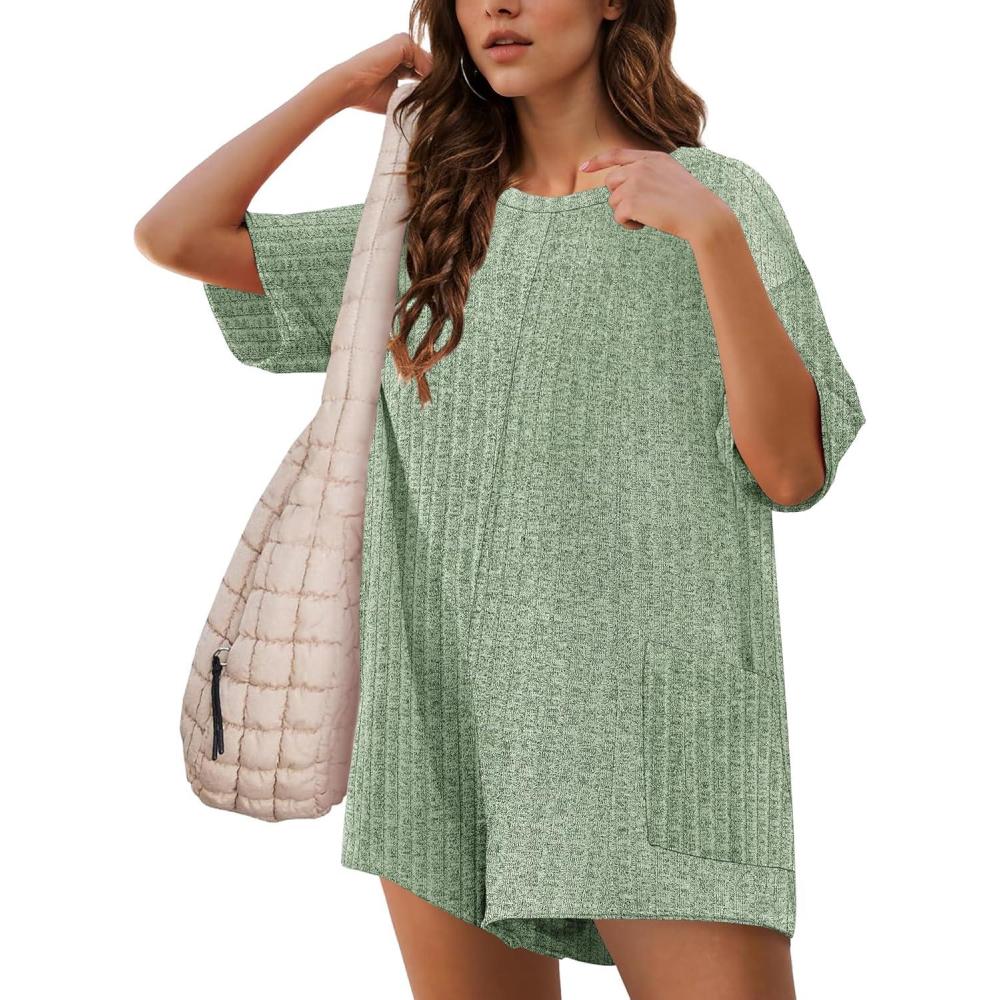 Get your hands on our newest Ekouaer Rompers for Women Casual Ribbed Short Sleeve T-Shirt Tee Romper Summer Outfits with Pockets 2025(Celadon Green) and enjoy a limited-time discount offer.
