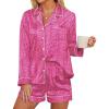 imageEkouaer Silk Pajamas for Women Satin Pajama Set Shorts and Top Long Sleeve Silky PJ Soft Loungewear Sleepwear Button DownBlue Green