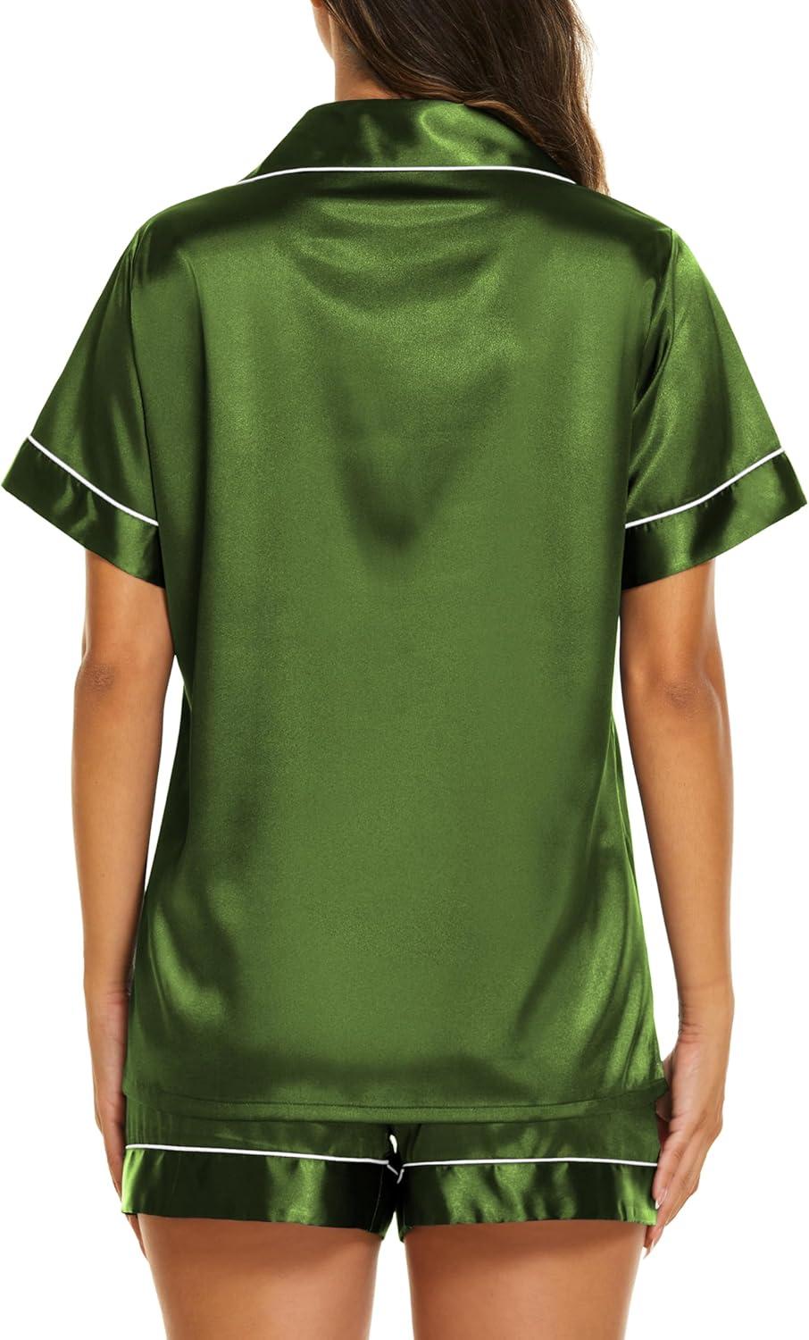Ekouaer Silk Pajamas for Women Short Sleeve Sleepwear Soft Button Down Loungewear 2 Piece Satin Pjs Shorts Set S-XXL(Dark Green)