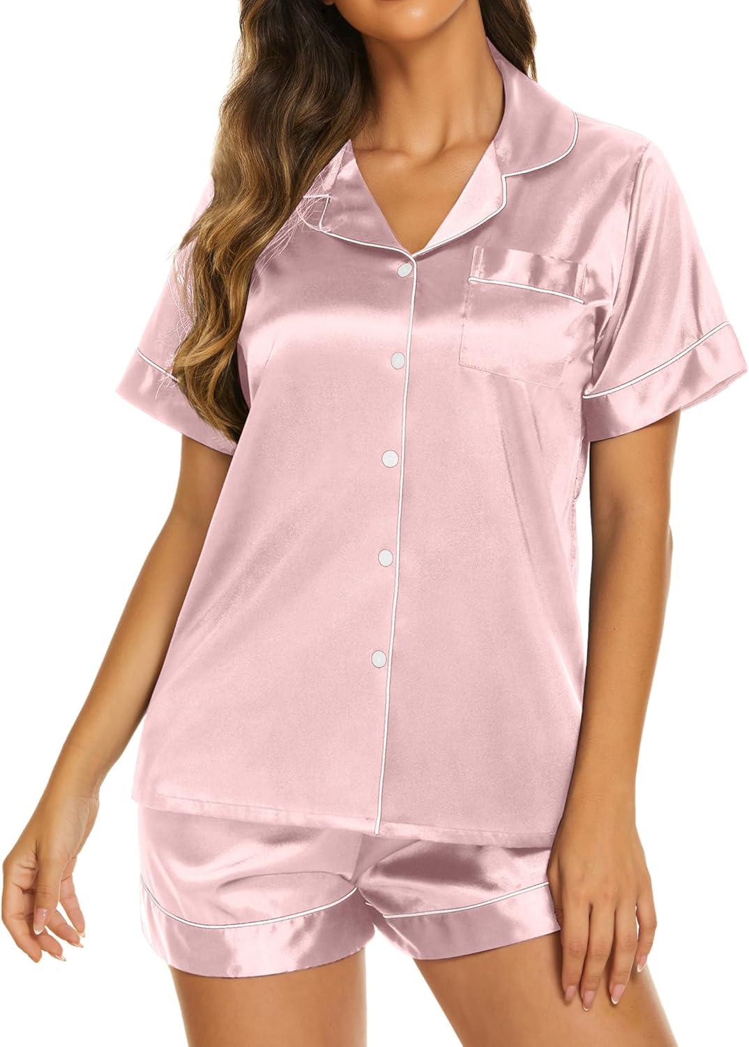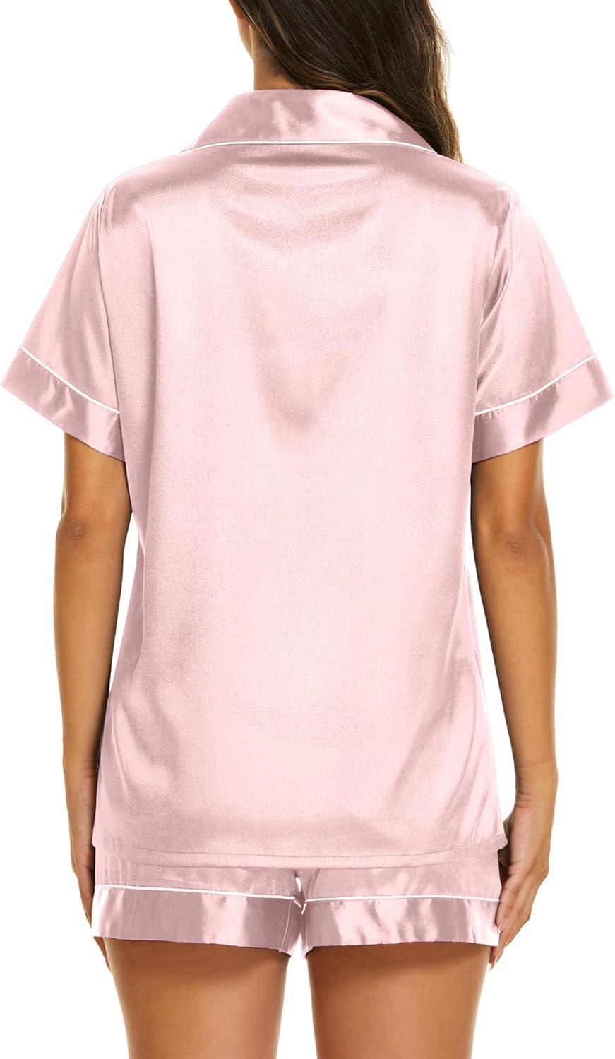 Ekouaer Silk Pajamas for Women Short Sleeve Sleepwear Soft Button Down Loungewear 2 Piece Satin Pjs Shorts Set S-XXL(Light Pink)