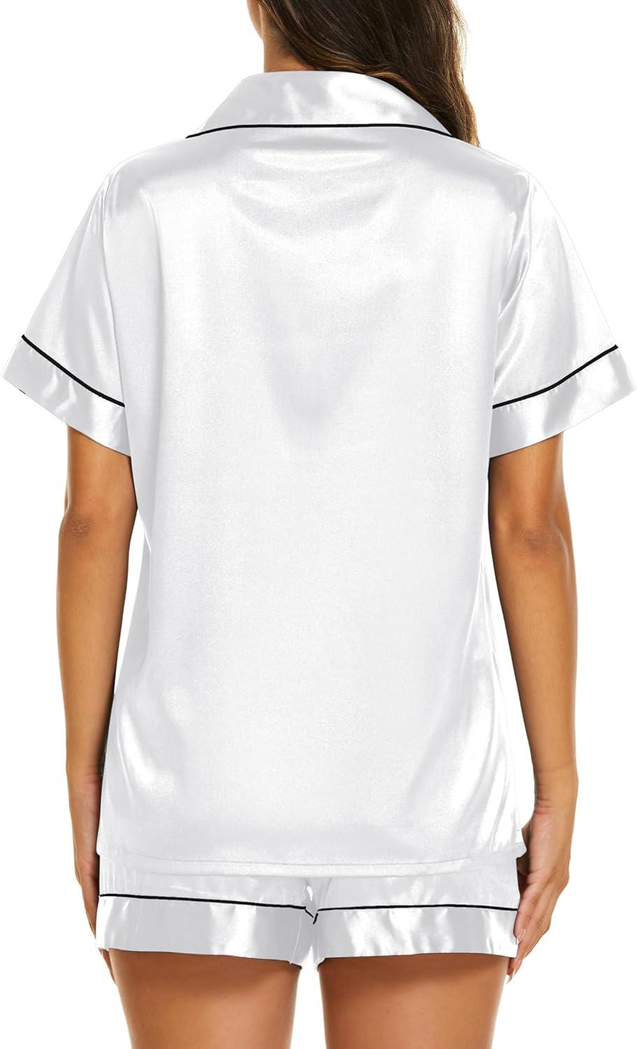 Ekouaer Silk Pajamas for Women Short Sleeve Sleepwear Soft Button Down Loungewear 2 Piece Satin Pjs Shorts Set S-XXL(White)