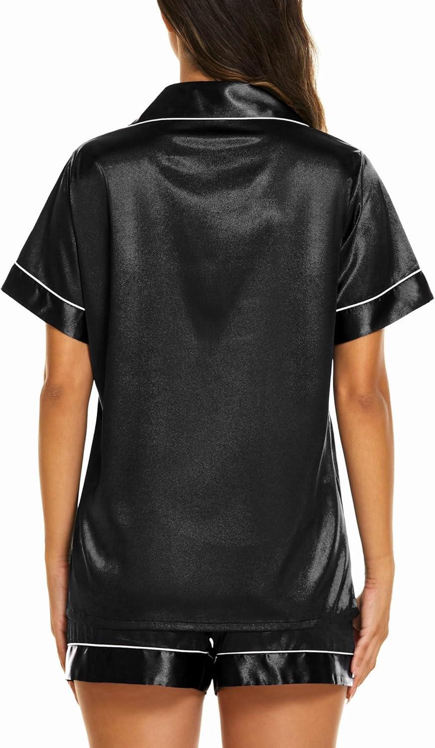 Ekouaer Silk Pajamas for Women Short Sleeve Sleepwear Soft Button Down Loungewear 2 Piece Satin Pjs Shorts Set(Black)