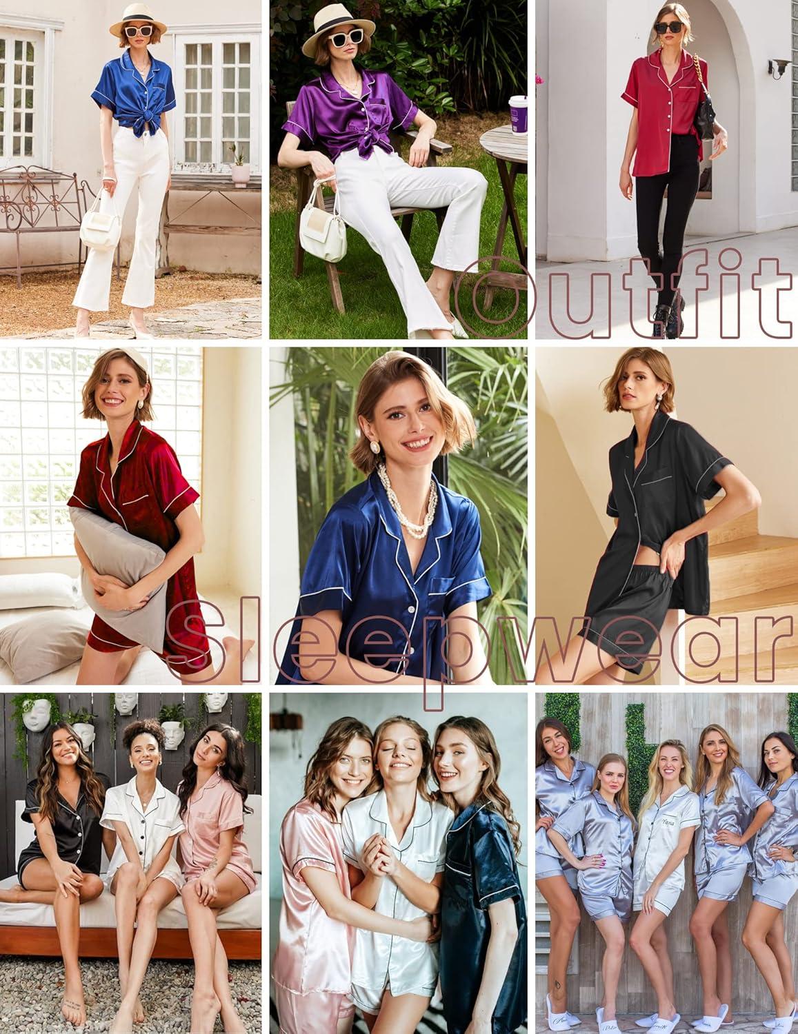 imageEkouaer Silk Pajamas for Women Short Sleeve Sleepwear Soft Button Down Loungewear 2 Piece Satin Pjs Shorts SetChampagne
