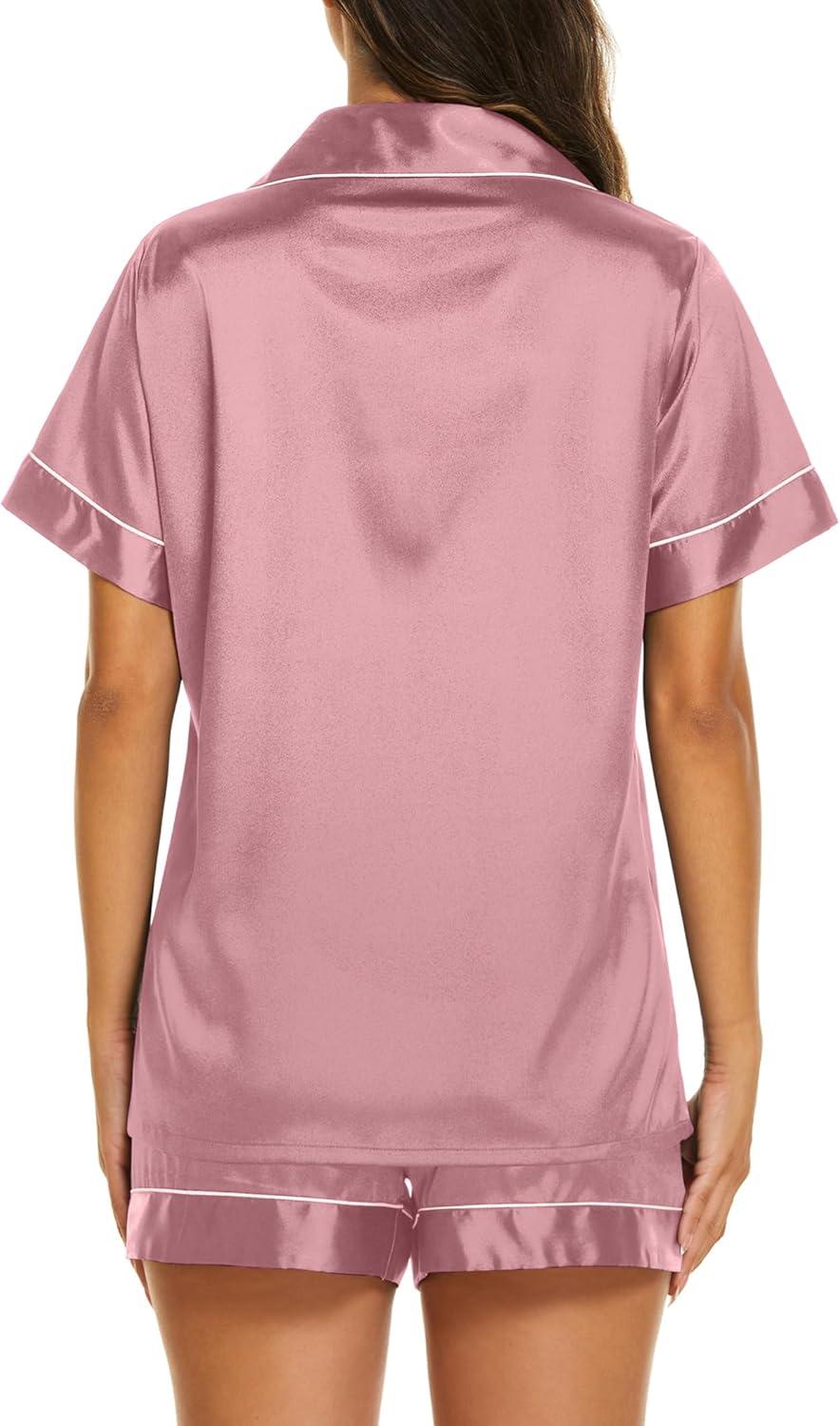 Ekouaer Silk Pajamas for Women Short Sleeve Sleepwear Soft Button Down Loungewear 2 Piece Satin Pjs Shorts Set(Lake Blue)