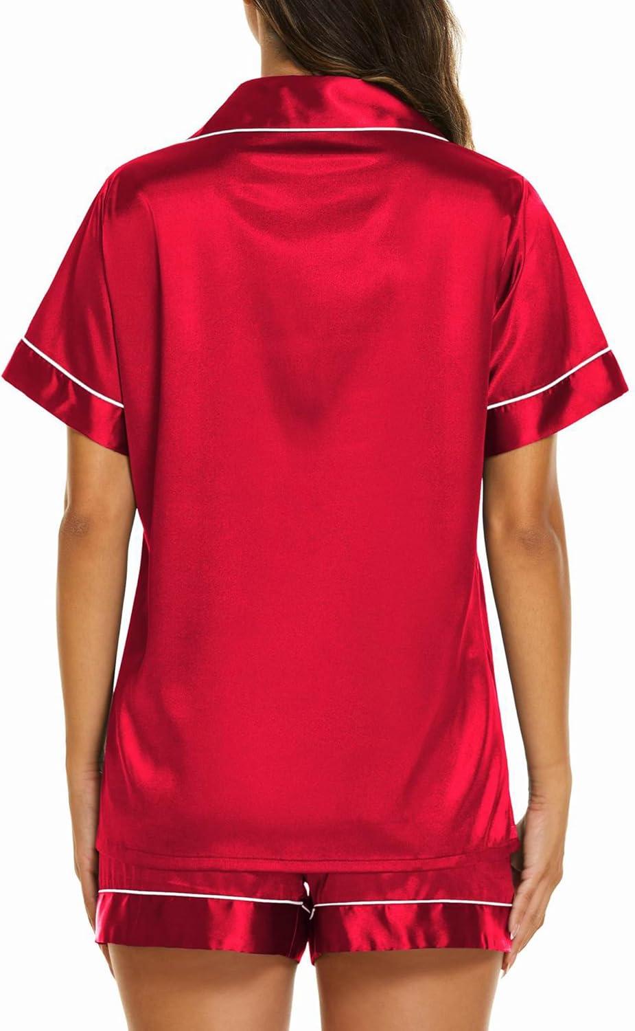 Ekouaer Silk Pajamas for Women Short Sleeve Sleepwear Soft Button Down Loungewear 2 Piece Satin Pjs Shorts Set(Red)