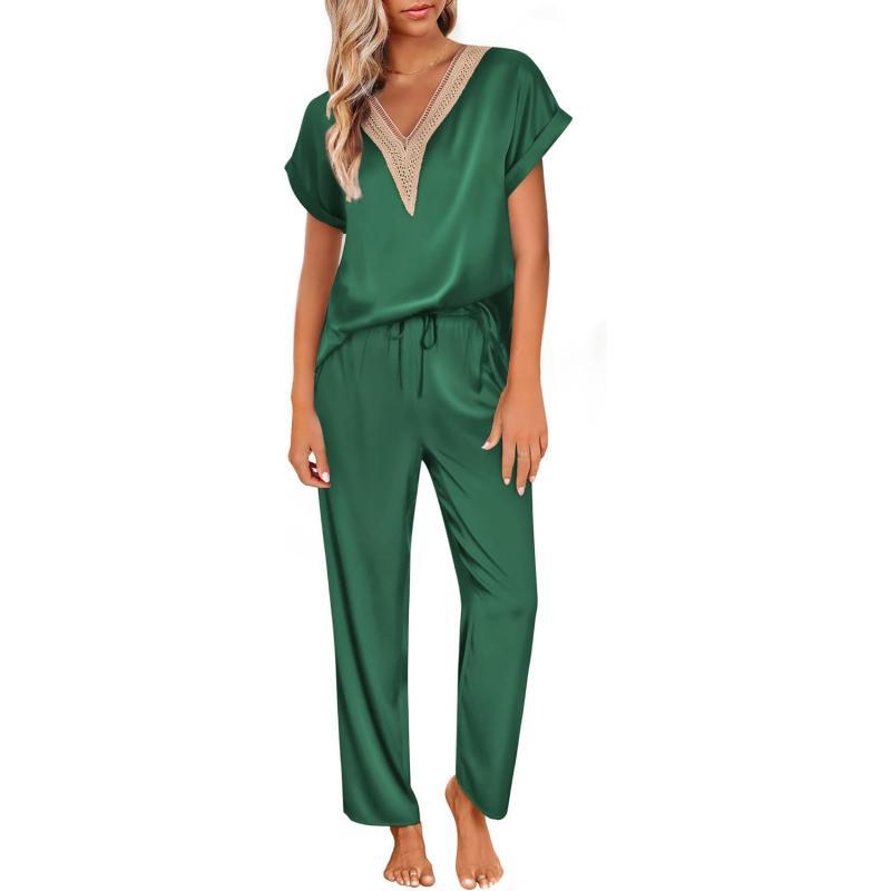 Be the first to review “Ekouaer Silk Pajamas Set Womens Lace V Neck Loungewear Short Sleeve Satin Shirt with Long Pant Silky Pjs(Evergreen)” Cancel reply