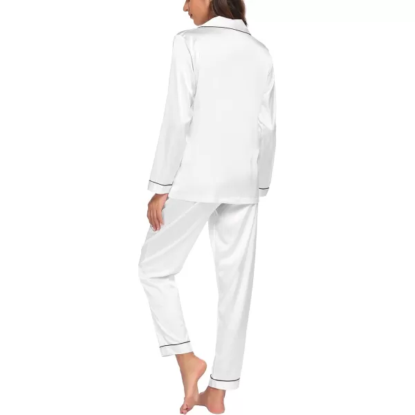 Ekouaer Silk Pajamas Women's Long Sleeve Sleepwear Satin Soft Button Down Loungewear Pjs Set S-XXL(White)