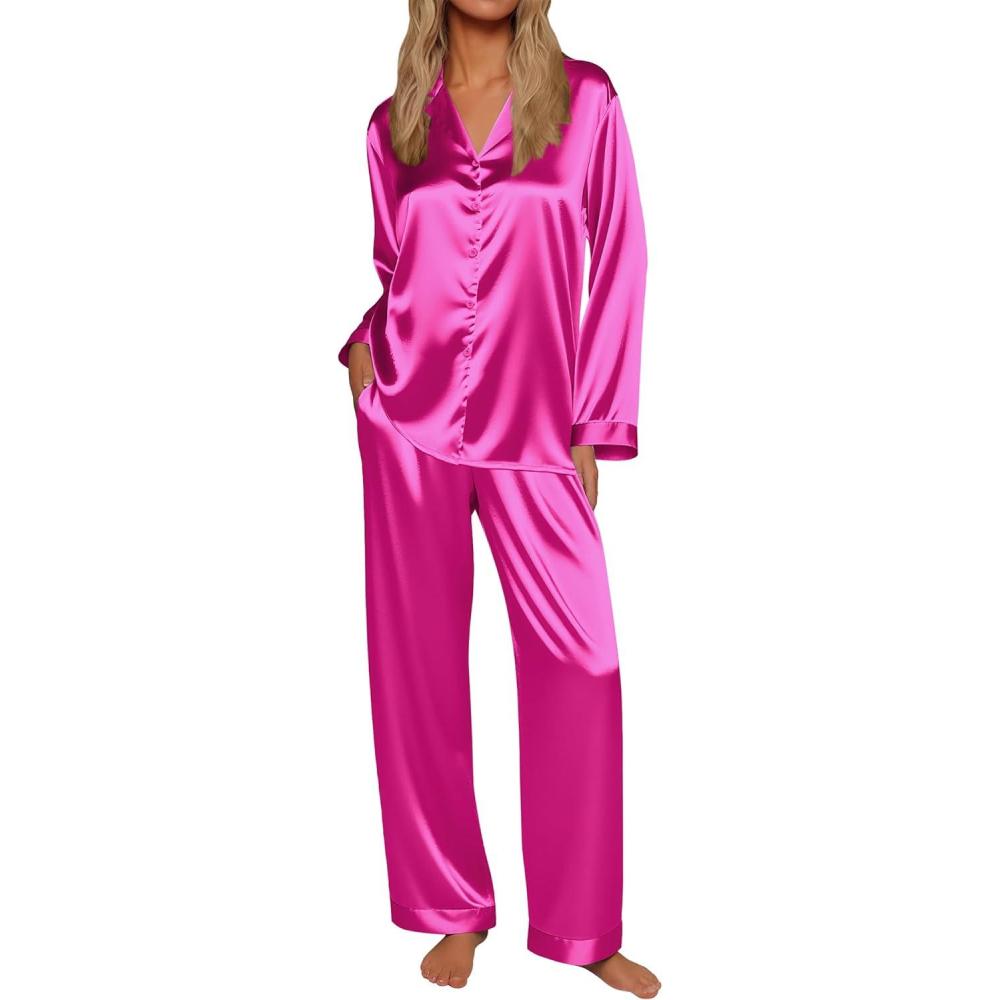 Get more for your money with our exclusive bundle deals on Ekouaer Silk Satin Pajamas for Women Button Down Pjs Set Long Sleeve Loungewear 2 Piece Wide Leg Sleepwear(Rose Red) and accessories.