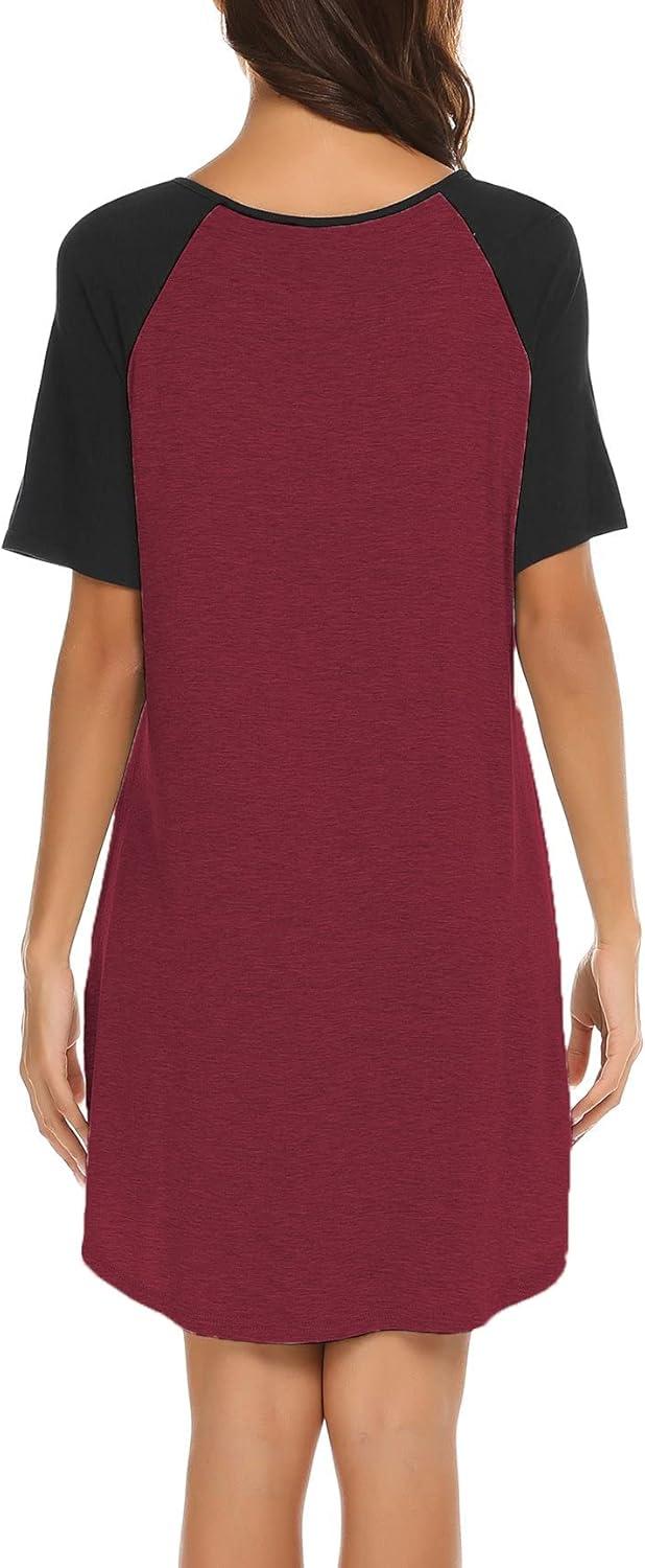 Ekouaer Sleep Shirts for Women Short Sleeve Night Shirts for Sleeping Pullover Nightgown Soft Nightdress S-XXXL(Wine Red2)