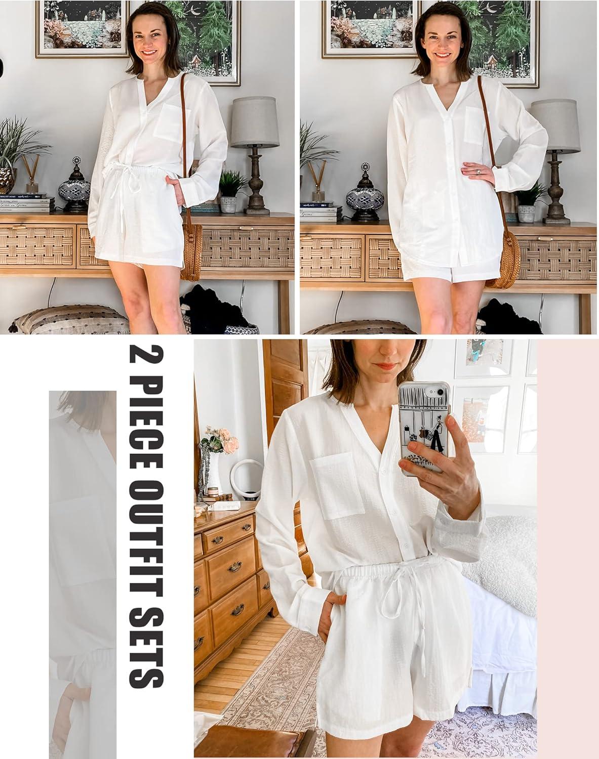 Don’t miss out on our limited-time offer: buy Ekouaer Summer Outfits for Women 2 Piece Sets Lounge Sets V Neck Button Down Shirt and Shorts Loungewear with Pockets(White), get {accessory} free!