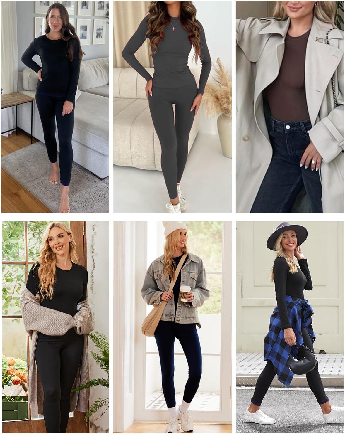Ekouaer 2 Pack Womens Scoop Neck Tops Long Sleeve Slim Fit T Shirt Thermal Shirts Basic Tight Tee XSXXLBlackBlack