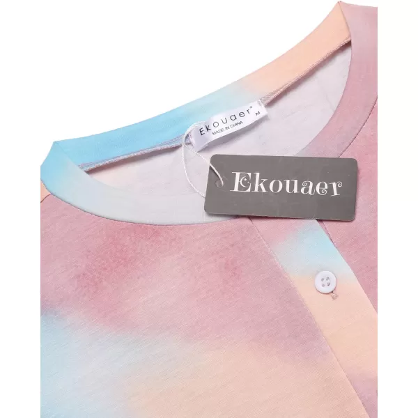Ekouaer Tie Dye Pajamas Set Womens Loungewear Sleepwear 2 Piece PJ SetsTie Dye Blue Orange